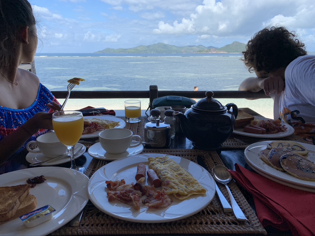 Su quest’isola soggiornavamo in un hotel davvero carino, che aveva il ristorante sul mare. Al mattino seguente facemmo una colazione ricchissima, c’era un buffet immenso e mangiammo di tutto, dal salato al dolce, ed era tutto squisito. In effetti Nadine scelse quell’hotel proprio per l’abbondante colazione che propongono al mattino. Subito dopo andammo alla famosa spiaggia di “Anse Source d’Argent”, designata come una delle più belle al mondo. Essa si trova a ovest infatti le sue acque turchesi sono basse con molte alghe, non è perfetta per fare snorkeling ma si trovano facilmente pesci tropicali. Ce n’erano alcuni giganti che arrivavano fino a riva, attratti dal cibo che i turisti gli gettavano. I miei amici riuscirono anche a vedere una manta un po’ più a largo. Inoltre la bellezza di questa spiaggia è accentuata dalle rocce di granito sparpagliate un po’ ovunque, che rendono il paesaggio unico e originale. Non a caso questa spiaggia fu scelta per girare scene di alcuni film come “Robinson Crusoe – La storia vera” e pubblicità come quella della Bacardi negli anni 90.