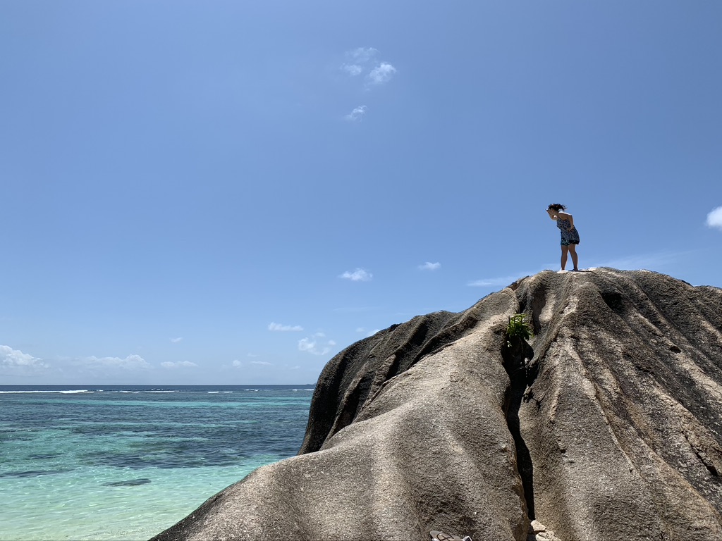 Il giorno dopo andammo all’isola “La Digue”, una delle più belle delle Seychelles, a soli 6 Km da Praslin. È la quarta isola abitata più grande delle Seychelles e ospita soli 2000 abitanti. A occidente, le spiagge si caratterizzano per le acque basse, che formano quasi una laguna, data la presenza di un’estesa barriera corallina. Sulle spiagge si affollano dei massi di granito dalle forme e dimensioni più svariate che ne determinano il fascino. Inoltre è l’isola perfetta se si vuole fuggire dal caos della città e dalle auto, infatti girano quasi tutti in bicicletta.