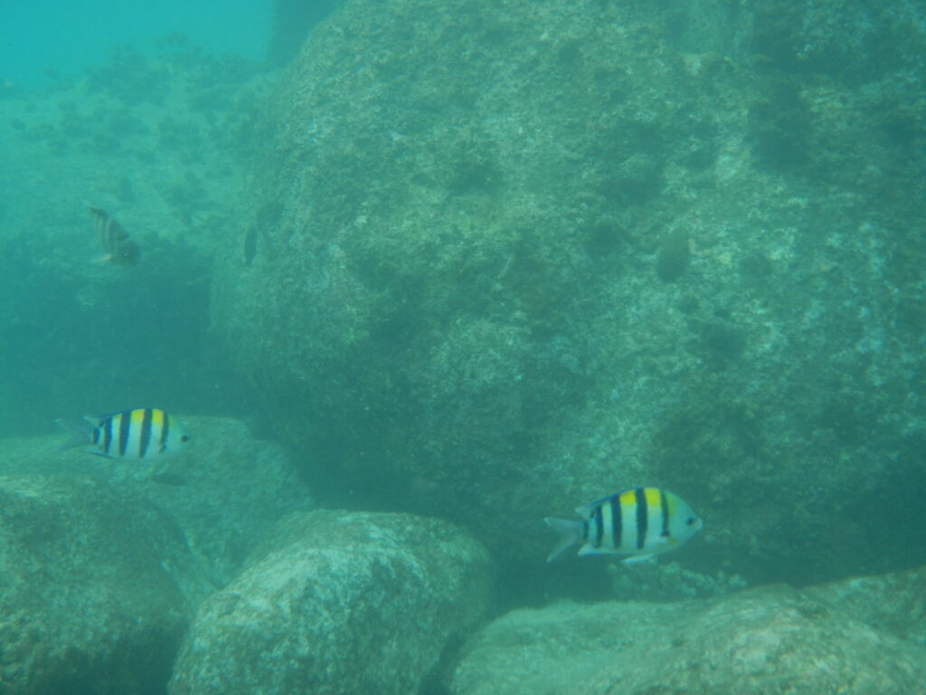 La percorremmo quindi su due ruote da cima a fondo (5 km di lunghezza e 3 km di larghezza), passando per le varie spiagge. C’è da dire che ci vuole un minimo di allenamento perché nel girare per l’isola ci si imbatte spesso in salite, che noi ovviamente facevamo a piedi col fiatone, portando la bici al nostro fianco.